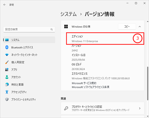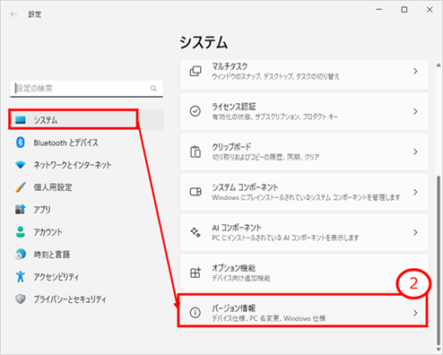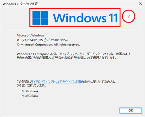 - 以下いずれかの方法で、Windowsのバージョンを確認する。