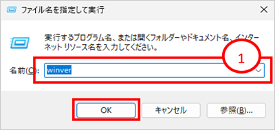 ファイル名を指定して実行の名前に「winver」と入力し、OKボタンをクリックしてください。