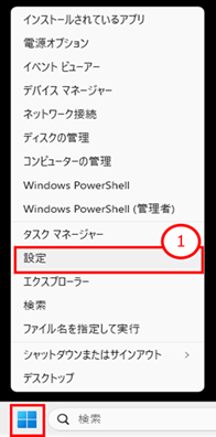 - Windows「スタートボタン」を右クリックして表示されたメニューの「設定」をクリックしてください。